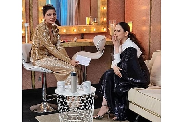 Samantha Akkineni recently entered the digital space with her talk show Sam Jam, which is available to on Telugu OTT platform Aha. Sam Jam premiered on November 13, with Vijay Deverakonda as the first guest. The show, which which was launched on the occasion of Deepavali, also indulges in fun activities with members of the live audience. The latest guest to appear on Sam Jam was Tamannaah Bhatia, on Wednesday. The actor took to Instagram to share her excitement for the same. In the picture, Tamannaah and Samantha are seen having a candid chat before the shooting the show.