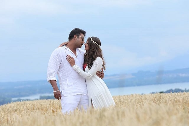 In Darshan’s latest film, Meera (Shanvi Srivastav) follows Tarak (Darshan) around until he falls in love with her. And Tarak, who spends most of the first 20 minutes of the film trying to keep her out of his life, finally agrees to go on one date with her and returns wearing the rose-tinted glasses of love. Yes, the entire sequence is as ridiculous as it sounds.