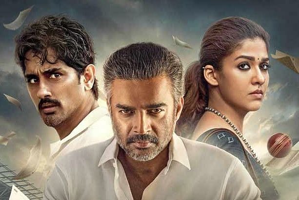 Test–with its cardboard cut-out characters–opens two days before Arjun (Siddharth), a player on the Indian cricket team, may or may not be selected for an upcoming test match with Pakistan. From the get-go, the film tries to lean into the tension that usually prevails before an India-Pakistan match. Test quickly sets up high stakes for all its characters. Once a star player, Arjun’s career now hangs by a thread. His childhood friend and cricket fanatic Kumudha (Nayanthara) has one last chance to try pregnancy through IVF before it’s no longer medically advisable. Her husband Saravanan (Madhavan), a generically written scientist, is in trouble with loan sharks. And since it’s a cricket movie, there are betting syndicates and various cops chasing after them.