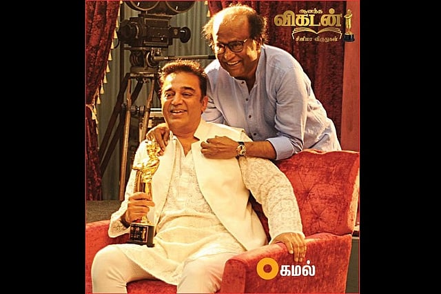 These pictures from the Vikatan Awards during which Rajinikanth presented Kamal with the Lifetime Achievement Award have delighted fans from both camps.