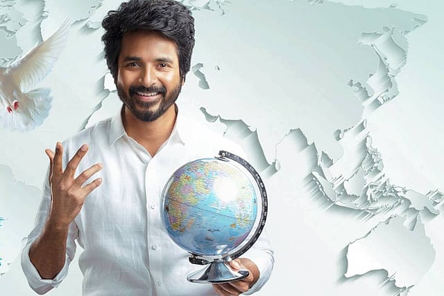 The title and first look poster of actor Sivakarthikeyan’s upcoming film, tentatively titled SK20, was unveiled on June 9. Extensively filmed in Puducherry and London, the shoot of Sivakarthikeyan and director Anudeep KV's Telugu-Tamil bilingual movie is in its final stages. Prince is the title locked for the movie and Sivakarthikeyan appears like a character who preaches peace in the poster, as he is seen wearing white shirt and white pants, along with a globe in his hand. The hands of others in the backdrop are painted with country maps. Sivakarthikeyan is also seen with a globe in his hands and a dove, which is the symbol of peace.