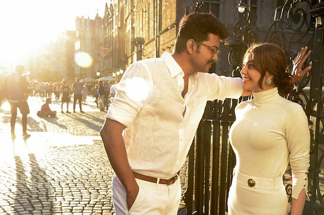 Vijay plays the lead role in the movie and he will be appearing in three different getups. Sharing the screen space with him as his leading ladies are Samantha Ruth Prabhu, Kajal Agarwal, and Nithya Menen. Others in the star cast include SJ Surya, Vadivelu, Sathyaraj, Kovai Sarala and Motta Rajendran.