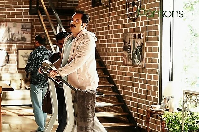 The actor is playing a dual role in the ad, one as the overweight man who is exercising on a treadmill and other in which he looks like himself.