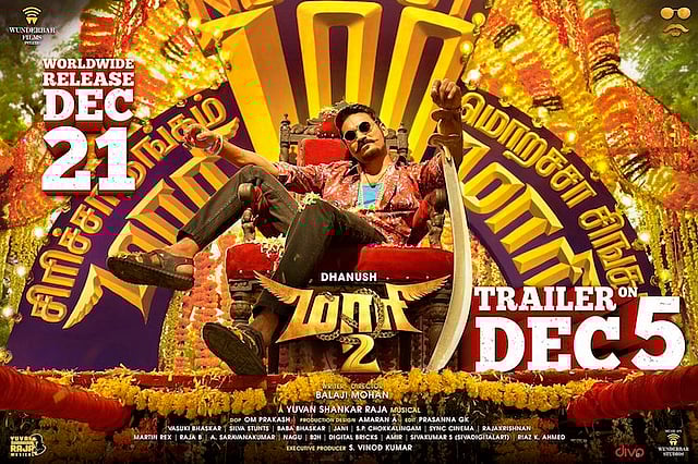 Maari 2 will be dubbed and released in Telugu simultaneously. On Tuesday, the makers revealed that Maari 2 will hit the screens worldwide on December 21 and the announcement was made via a special poster. The film will now slug it out with Vijay Sethupathi’s Seethakathi, Jayam Ravi’s Adanga Maru and Vishnu Vishal’s Silukkuvarupatti Singam at the box-office on December 21.