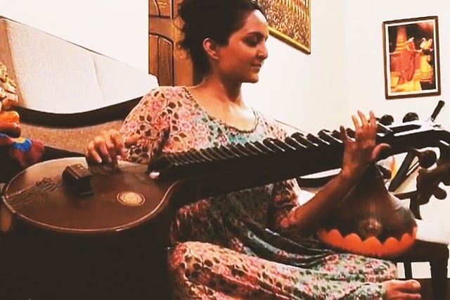 Earlier on May 8, she had posted a video of her playing another, more complex tune on the veena. She had captioned the video, “As long as you are learning, you are not failing!” In this video she is in the company of another woman who is watching her play. The actor already has some playback singing to her name, and now, playing the veena is clearly adding another feather in her cap.