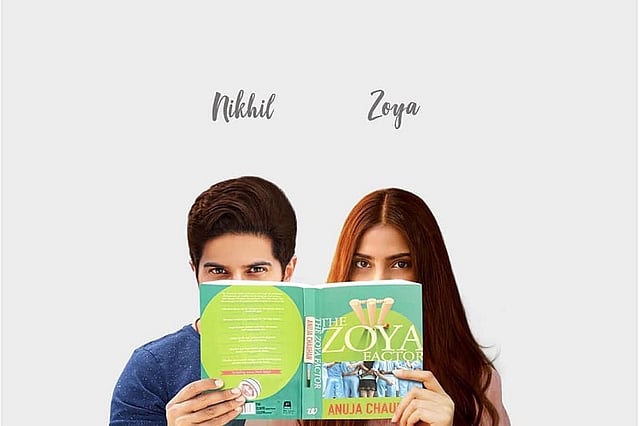 The poster shows Dulquer and Sonam holding and peeking out from behind the eponymous novel by Anuja Chauhan, on which the film is based.