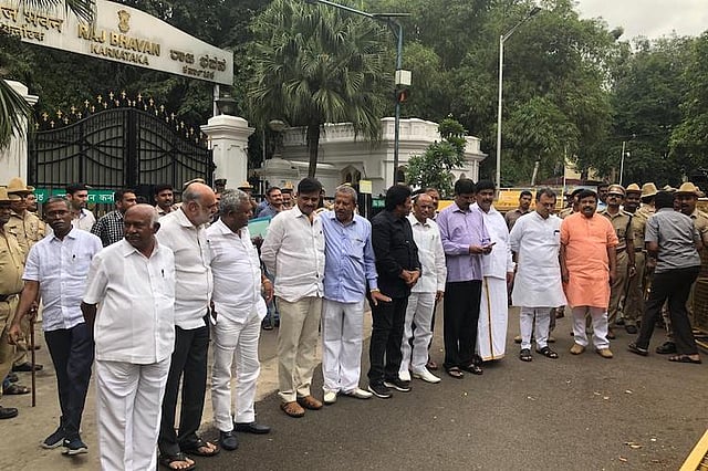 Dramatic scenes unfolded at Vidhana Soudha on Thursday evening as the 10 rebelling MLAs (7 Congress and 3 JD(S)) arrived in Bengaluru to, once again, submit their resignations to Karnataka Speaker KR Ramesh Kumar.