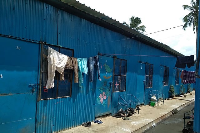 “We are able to save a little from what we earn here. We don’t have that many expenses. The company also provides firewood apart from housing and healthcare. And two out of the kids’ three meals are covered at the school [day-care centre],” explains a women migrant worker at JMC’s site located in Kempapura.