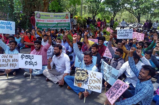 The students allege that the university has violated the UGC guidelines this year by setting the cut-off limit for SC/ST and OBC, the same as it is for General Merit (GM) at 55%. Other universities like Mysore University and Karnataka University set the cut off at 55% for GM, 50% for OBC and 45% for SC/ST candidates. The students say that this was being followed till recently, but has been changed this time and demand it be revoked.