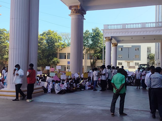 On Thursday, the students shifted their protest venue to Victoria Hospital, alleging intimidation by the administration, threatening punitive action.