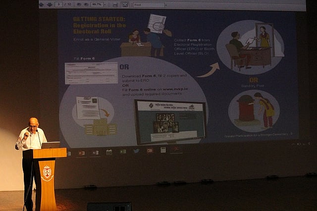 PG Bhatt, social Activist and electoral analyst, who has been campaigning to clean errors found in electoral rolls across the country provided a step by step guide to the enrolment process. “In order to mend the system, one needs to be part of the system. The first process is to register yourself,” said Bhatt. He pointed out that athough Bengaluru remains the IT hub of India, the online enrolment process is yet to kickstart in the state.
