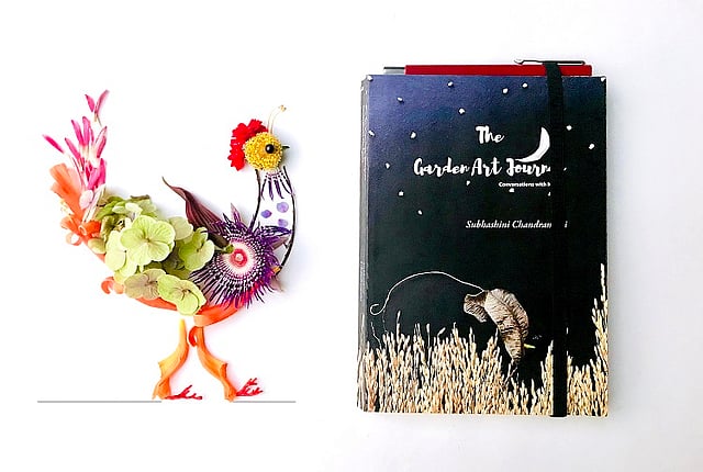 Sustainable art, using wilted flowers and plants, leftover vegetables and fruits has become a passion for Bengaluru-based Subhashini Chandramani. This 'Garden Art' began randomly enough in 2015, when she picked up fallen blooms and leaves from her garden and incorporated them in her sketches.