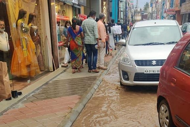Visuals of damaged footpaths and waterlogging in Bengaluru's Commercial Street surfaced online on Saturday, July 24. The images and video showed that the cobblestones had dislodged in many areas and water was seen gushing out of a pipe from the footpath. This came just a day after Karnataka Chief Minister BS Yediyurappa’s visit to the street where he commended officials on the work being done as part of the Smart City Project to beautify the area.