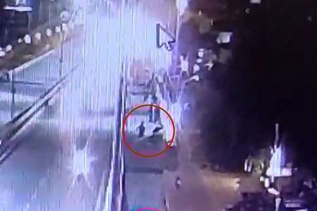 Another CCTV camera shows footage from a building just below the flyover, which captured the horrific incident from the street-level. In it, the victims can be seen falling and hitting the street below