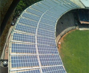 By Benita ChackoIn his speech in Toronto today, Prime Minister Modi spoke of his dream of a saffron revolution, the colour saffron symbolising energy. He told his audience that he wants to see India undertaking an energy revolution with renewable energy resources, “India is moving towards 175 GigaWatts (gW) of renewable energy- 100 gW of solar energy and 75 gW of wind energy.”Bangalore seems to have already taken a step towards this saffron revolution. On Thursday, Chinnaswamy stadium in Bangalore became the first cricket stadium in India to adopt solar power by installing a 400 kW rooftop solar plant.Karnataka State Cricket Association will be greatly benefitted from this green step. Earlier due to BESCOM’s frequent tariff revision, the stadium could never predict their energy cost, now they would be able to do that. More importantly, it will drastically bring down their electricity bill. Brijesh Patel, secretary, KSCA says that the stadium consumes about 16 lakh units of power annually and spends more than Rs 1 crore over power consumption.Moreover, they will receive their return on investment in just four to five years. It is also hoped to be a boon for the state as the energy saved here can be diverted to other places that are in need of energy.Srinivas Kumar, the CEO of RenXSol Ecotech, the company that undertook the designing, engineering and the project management for the installation of the solar panels, says, “It is the only source of energy that can be completely set up by the individual. It requires no permissions from the government and can be set up in any location.”The panels have been installed on the roofs of the eastern stands and are capable of producing 1,700 units every day. This is sufficient to cater to about 40-50% of the stadium’s annual requirement. This is said to reduce the carbon emission by 600 tonnes annually. However, the floodlights will not be fuelled by solar power.Using the net metering system, the surplus electricity generated will be sent to the Bangalore Electricity Supply Company (BESCOM) grid with Karnataka State Cricket Association (KSCA) earning Rs. 9.56 per unit.Srinivas Kumar also said that they faced some challenges in the designing due to the old structure of the stadium. The height of the stands, at about 70 feet from the ground, was also a major challenge. In spite of these challenges, the Rs. 4.5 crore project was completed in a short span of 50 days, says Kumar with pride.MROTEK, a Bangalore based firm, has worked on the implementation of the project. They say the only maintenance that the plant requires is in terms of dust clearance and that will be taken care of by sprinklers that are set up along with the panels.KSCA hopes to take their green initiative forward in the next phase by installing solar panels on the Western stands as well. It also plans to install sewage treatment plants to use treated water in the stadium.Highlighting the importance of solar energy Kumar says, “We have identified 50 villages which are still using diesel, an expensive fuel, for their energy needs. If a company takes up this cause for their Community Social Responsibility (CSR) activity, then these villages could benefit from solar power.”Picture Courtesy: RenXSol Ecotech