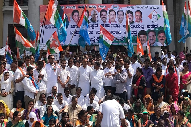On a day when the Bharitya Janta Party (BJP) took to the streets with a 'Parivartana Yatra' in a specially designed ratha and Janata Dal (Secular) (JDS) launched fifty vehicles mounted with LED screens, the ruling Congress party held a protest against BJP leader R Ashok in connection with the Bagar hukum land scam.