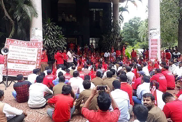 Clifton D Rozario, a member of the CPI-M (L) and a lawyer at the Karnataka High Court who is advocating the cause of the contract employees said, “They are getting salaries of Rs 6,000 to Rs 7,000, much below the notified minimum wage. It is very difficult to survive on that. How are they supposed to live? Most of the protestors will stay here overnight. As far as minimum wage is concerned, we have done everything that we could have done but all of them yielded no result.”