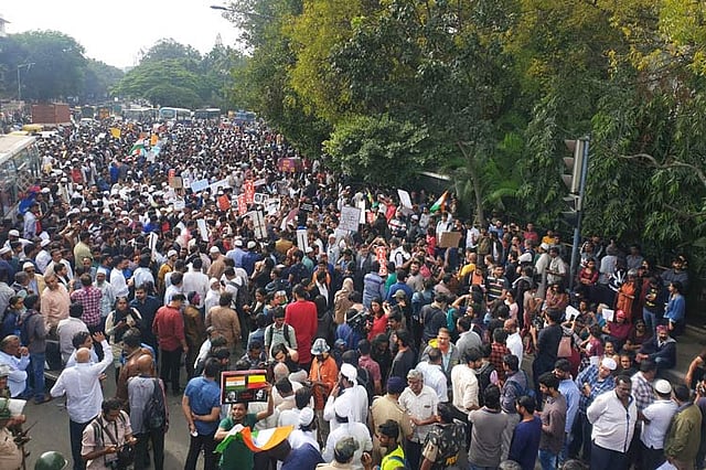 Around 12.30 pm on Thursday, hundreds of people gathered around 50 metres away from Bengaluru’s Town Hall. Despite the police insisting that they disperse, the protesters marched to the Town Hall, and within minutes, the crowd swelled. This large a crowd is seldom seen at Bengaluru protests, and what made this gathering unique was that they had defied Section 144 imposed in the city and turned up at noon, even though almost a hundred people had been detained in the morning.