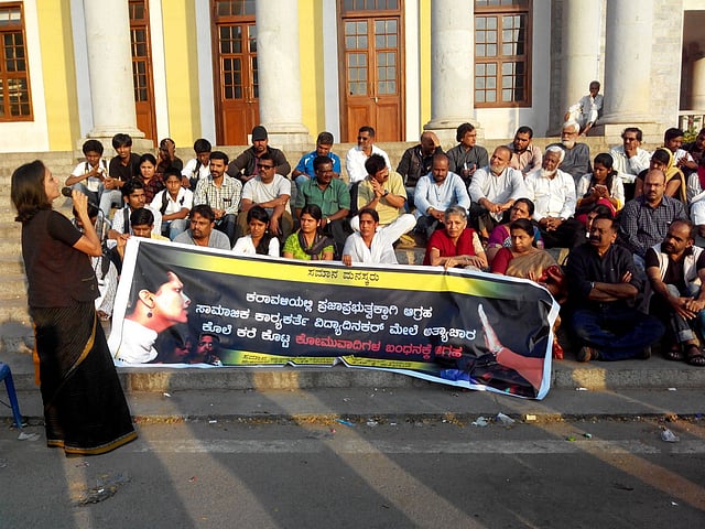 While Dinker’s case is the most recent one, Coastal Karnataka region has been facing threats from right-wing activist for many years now, says Dayananda TK, a Kannada writer who is participating in the protest.