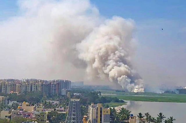 The CEO of Karnataka Lake Conservation and Development Authority Seema Garg, however, told TNM, "There is no need to panic. The majority of the fire has been doused by fire department officials. Now the fire is under control. Officials of the KLCDA are there on the spot."