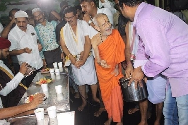 Vishwesha Tirtha Swami served dates to those who had gathered for the Iftar.