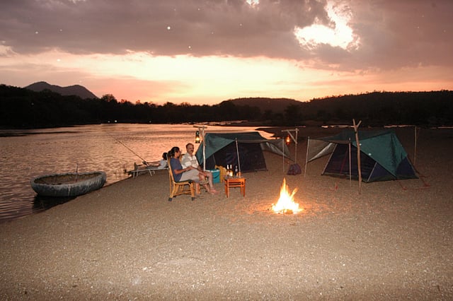 We found plenty of activities to indulge in at this dream destination. Most of them revolved around the ubiquitous Cauvery river which flows sinuously through the varied terrain of the Cauvery Wildlife Sanctuary. Birding, bonfires, coracle rides, camping on the sandy banks of the river, trekking, ziplining, wildlife safaris, and bird watching are all part of the wilderness escapade. The experience encompassed a broad canvas. River rafting, another much sought-after adventure sport at Bheemeshwari, is offered only in the monsoon months. The Cauvery boasts of good fun rapids and offers the opportunity to paddle through them for an adrenaline rush.