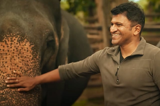 Puneeth Rajkumar, or Appu, also goes on a journey of his own in the film and encounters a whole gamut of emotions within him along the way. He gets to live the dream of camping in the open wilderness, swimming in and diving merrily into vast waters, riding a not-so-sturdy motorcycle through the jungle, and most importantly, making valiant attempts to overcome his morbid fear of snakes. The superstar actor and producer bares his heart throughout, often looking into the camera and speaking away his thoughts and gently showing us how the whole experience changed him from within. And to make things even more endearing, one finds him often breaking into his quintessential smile and slipping in a cute little remark to diffuse the danger weighing on his mind.