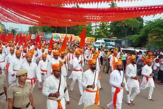 The rally by the Hindu Jagarana Vedike started from the Mahishamardini temple in Kadiyali before heading towards the Udupi city bus stand and ending at the venue of the programme outside the Udupi Krishna temple. The rally included a statue of Chhatrapati Shivaji with chants of "Jai Shivaji, the one who built a Hindu rashtra" sung by the crowd. The Maratha ruler has increasingly become a prominent symbol at events organised by Hindutva groups in Udupi, similar to the way Hindutva groups have used the historical figure to mobilise backward castes in Telangana.