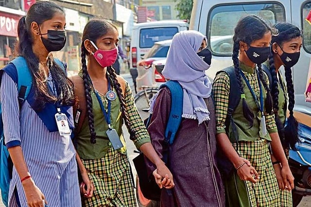 Amid #HijabRow, Students from different communities walk together to the government PU College in Udupi..