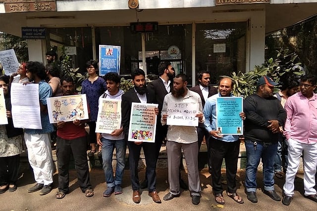 Lawyers, child rights activists and many residents of Bengaluru showed up outside the office of Director-General and Inspector General of Police Praveen Sood on Thursday and held a silent protest condemning the police interrogation of minors in the Bidar school play case.