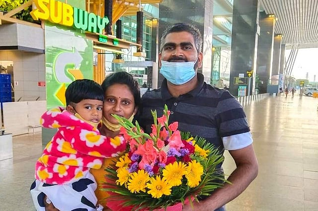 Harish Bangera, who was arrested in Saudi Arabia in December 2019 for allegedly posting defamatory messages on social media, was released and returned to India on Wednesday. Harish, an air condition repair technician, hails from Beejadi near Kundapur in Udupi district of Karnataka. He was welcomed at the Bengaluru International Airport by his wife Sumana who is an anganwadi teacher, his daughter Hanishka and his friends. He was arrested after a Facebook profile in his name posted defamatory messages online against Saudi Arabia’s crown prince Mohammad bin Salman.