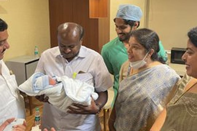 A local news publication quoted JD(S) legislator TA Sharavana saying that former Prime Minister and JD(S) Chief HD Devegowda is over the moon as he became a great-grandfather. Photos of the family’s visit to the hospital have gone viral on social media. In photos that are being shared, the JD(S) Chief can be seen holding the newborn and Nikhil smiling at them.