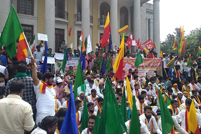 Similar protests were held in Tumkur, where a joint protest was led by farmer organisations and pro-Kannada outfits.