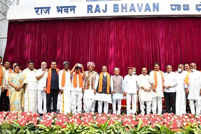 Days after Karnataka’s new Chief Minister Basavaraj Bommai was sworn in, 29 BJP MLAs took oath as ministers in the new Cabinet on Wednesday, August 4. The MLAs took their oath at the glass house in the Raj Bhavan in Bengaluru on Wednesday afternoon. Bommai, who was elected the new leader of the BJP legislature party last week following Yediyurappa's resignation, had taken oath as Chief Minister on July 28.