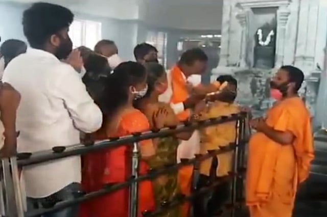 Eashwarappa is the in-charge minister for the district of Shivamogga; the district administration, when questioned by the local reporters, claimed they were unaware of the incident. TNM’s calls to Eshwarappa went unanswered. Earlier, on May 18, CM Yediyurappa’s son Vijayendra had visited the Nanjangud temple with his wife. After the photographs of the same went viral, the Karnataka High Court, on May 20, questioned the state government over the VIP treatment given to Vijayendra.
