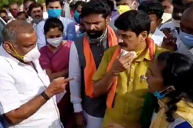#Watch - #Karnataka law minister JC Madhuswamy @JCMBJP abuses a woman farmer leader in #kolar ... @CMofKarnataka @BSYBJP @DKShivakumar @siddaramaiah @TheTanveerAhmed @JanataDal_S pic.twitter.com/rPhmgYpZ9M