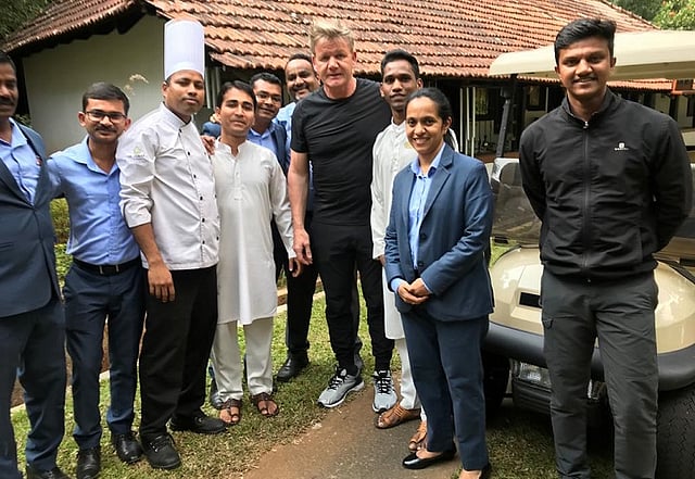 During his visit to Kodagu, Gordon Ramsay interacted with chefs at The Tamara Coorg and also planted a sapling in the resort after accompanying the staff members on a tour of the place.