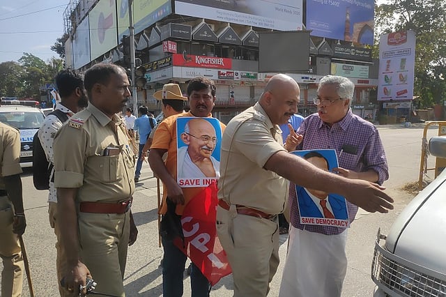 The six CPI members had gathered at Lalbagh Circle, located near the Mangaluru City Corporation building and had started shouting slogans. Among the protesters was Rajya Sabha MP Binoy Viswam from Kerala.