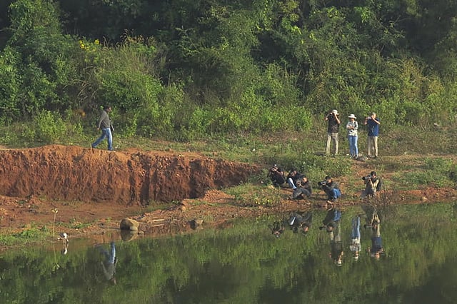 Birdwatchers patiently wait for birds flying around in the canopy | Photo by Deepa Mohan