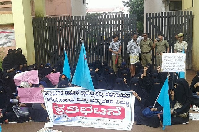 Muslim students from Srinivas College of Pharmacy, Valachil campus near Mangaluru protested against the administration saying such rules were an attempt by college authorities to suppress religious rights.