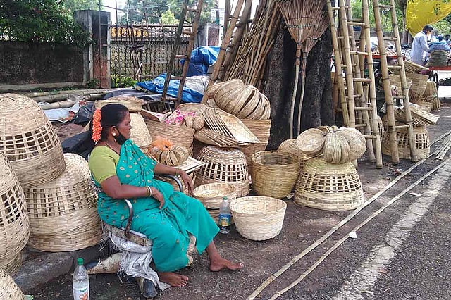 Medara Beedi in Nanjumulige is brimming with people on a Thursday given that the Mysuru district administration only allows marketplaces to open on Mondays and Thursdays. Not a single customer walks towards bamboo items even though the street is filled with people.