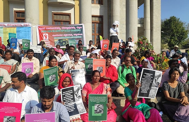 The organisations submitted a memorandum to the Karnataka government's Labour Department highlighting the deaths of 85 workers employed in manual scavenging work in the last 25 years.