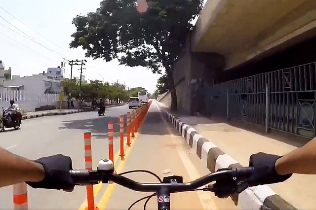 Officials say that the full work of the 16 kilometre-long pop-up cycle lane will be ready by the end of November. “We have already finished 3 km from KR Puram side, and we will quickly finish up the work as setting up the barricades is the only work left. All the other time-consuming work, including as marking and the road undulations, have been done,” an official working in the project told TNM.