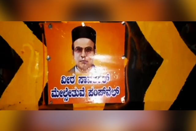 A poster proclaiming the Pumpwell flyover in Mangaluru as ‘Veer Savarkar flyover’ appeared on Thursday, just days after the controversy over naming a flyover in Bengaluru after VD Savarkar. A similar poster in Mangaluru had appeared earlier this week, and police officials stated that it was removed on Wednesday. However, the vinyl poster made an appearance once again on Thursday.