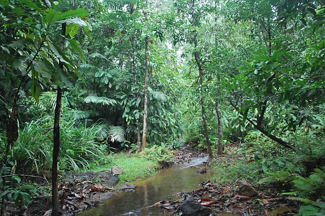 One of the best-known Myristica swamps in this forested region, Kathalekan, is revered by local communities and is the site of long-sustained religious practices. Such sites, designated as the home of indigenous deities, are known as sacred groves, or devara kaadu in Kannada. Swamps in the district are jointly managed by the state forest department and local communities, leading to a sense of ownership and responsibility for the maintenance of these relic forests. They are also protected for their ecosystem services – they allow for groundwater replenishment, prevent downstream flooding by retaining excess water, and purify the water supply downstream.