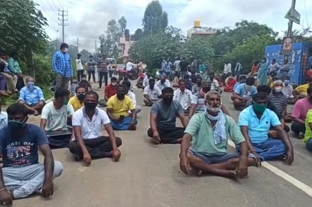 Even as Bengaluru is all set to go into a complete lockdown starting Tuesday night to cope with the continued spike in COVID-19 cases, a section of residents in Electronic City started a protest on Saturday.