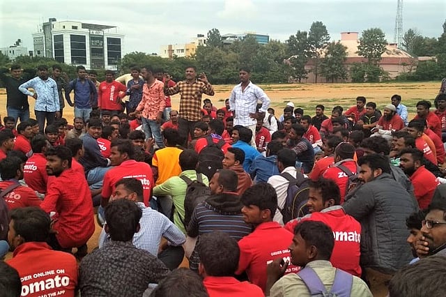 Zomato delivery executives protesting in HSR Layout, Bengaluru