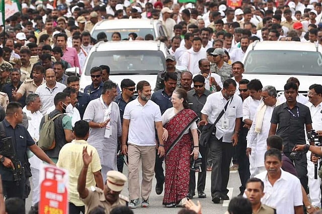 Congress president Sonia Gandhi on Thursday, October 6, joined the Bharat Jodo Yatra in Karnataka’s Pandavapure, participating in a public event of the party after a long gap. Amid cheers and slogan-shouting by party workers, Sonia Gandhi walked beside her son Rahul Gandhi and other leaders for a few kilometres in Mandya district of Karnataka. A number of senior Congress leaders, including former chief minister Siddaramaiah and Pradesh Congress Committee (PCC) president DK Shivakumar, walked along with the Gandhis.