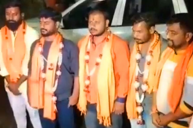 On Saturday evening, after their release, the Sri Ram Sene welcomed the four culprits by smashing a watermelon in front of them. The slogans of ‘Jai Shri Ram’ were raised and the four, wearing saffron shawls, were felicitated by fellow Sri Ram Sene members. A video shows a Sri Ram Sene member lighting a small diya on the watermelon and then breaking it.
