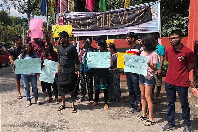 The students have been voicing their dissent for over a week against the inordinate delay in the appointment of a full-time Vice-Chancellor (V-C). While the position fell vacant when the previous Vice-Chancellor R Venkata Rao completed his term of 10 years on July 31, his successor had been named on August 2 following due procedure. Students allege that the present registrar OV Nandimath who was one of the applicants for the V-C post and is a vital part of the existing framework is acting in vested interest to stall the process.